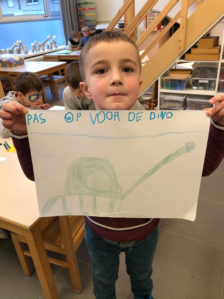 Gisteren vroegen de kleuters nog om onze boodschap "Help, dino ontsnapt" op de computer of in de krant te laten zetten. Om nog meer mensen te waarschuwen.